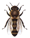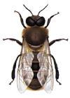 Die Königin hat einen langen schlanken Hinterleib mit einem für Menschen nicht spürbaren Stachel. Ihre Aufgabe im Stock ist es, durch Eiablage den Bienenbestand sicherzustellen.